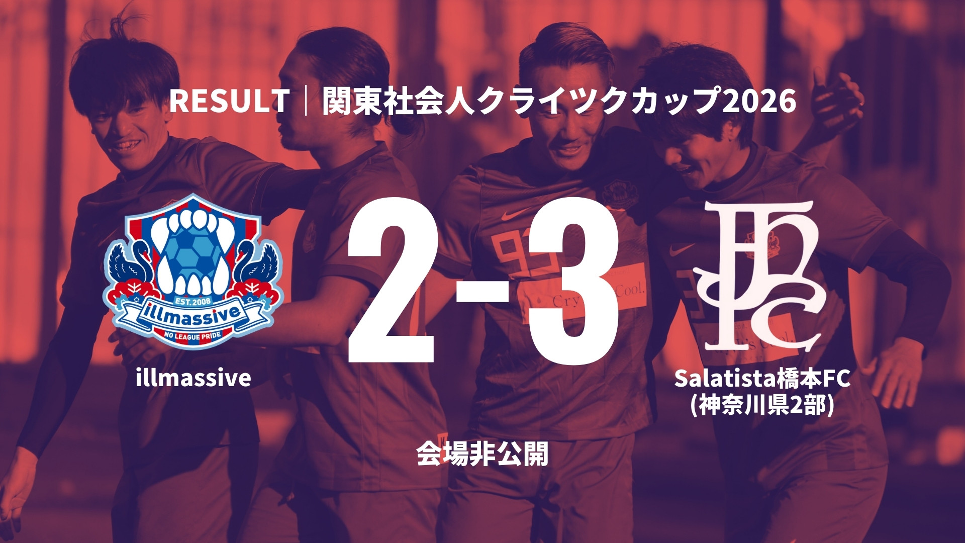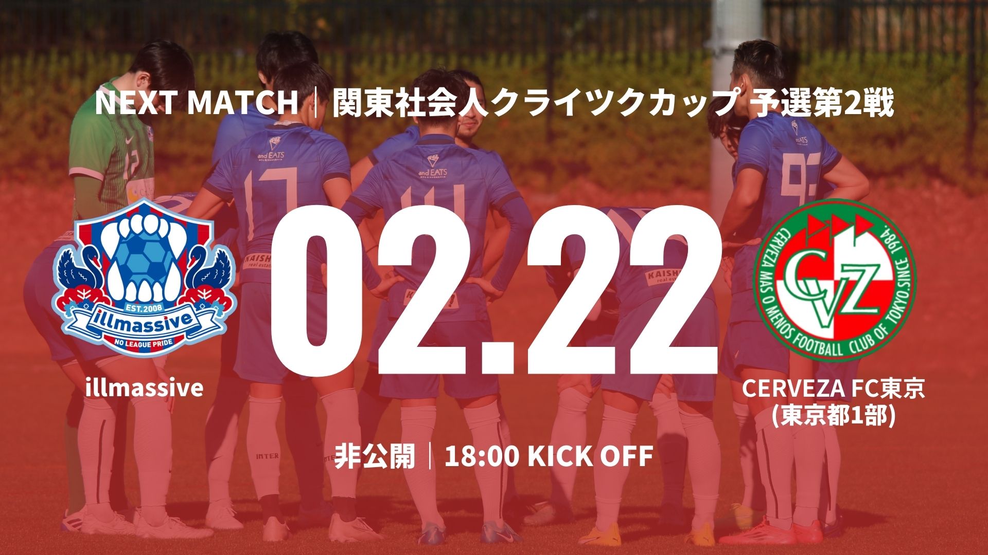 PURPOSESTAY AND PLAYサッカーをやめる人を減らす新しい選択肢になるNO LEAGUE PRIDEリーグ無所属社会人サッカーチームの価値向上 CLUB INTRODUCTION ABOUT US 2026年1月29日 【新メンバー】三堀亜門選手が加入 355 2026年1月19日 【新メンバー】伊藤啓佑選手が加入 350 2025年11月29日 【新メンバー】梅村脩斗選手が加入 461 2025年11月25日 【新メンバー】塩谷知哉選手が加入 405 2025年10月25日 【新メンバー】三ッ田啓希選手が加入 763 2025年10月23日 【新メンバー】前田海選手が加入 507 ALL NEWS 誰にも真似できない「リーグ無所属」という生き方で日本の社会人サッカー史に名を残す唯一無二の社会人サッカークラブになる。 ABOUT US MATCH SCHEDULE 2.15 [SUN] 18:00|関東社会人クライツクカップ2026 Supported by New Balance 予選第1戦 vs Saltista橋本FC|非公開 2.22 [SUN] 18:00|関東社会人クライツクカップ2026 Supported by New Balance 予選第2戦 vs CERVEZA FC東京(東京都1部)|非公開 3.1 [SUN] 18:00|関東社会人クライツクカップ2026 Supported by New Balance 予選第3戦 vs 市川サッカークラブ(千葉県1部)|非公開 3.8 [SUN] 10:00|横浜カップ 決勝 vs JFC FUTURO(神奈川県2部)|ニッパツ三ツ沢球技場 CALENDAR Instagram . // 𝙒𝙚𝙡𝙘𝙤𝙢𝙚 . // 𝙒𝙚𝙡𝙘𝙤𝙢𝙚 𝙉𝙚 . ➪イベント|都内で、2025年、蹴り納めしませんか? 昨年も開催した社会 . // 𝙒𝙚𝙡𝙘𝙤𝙢𝙚 𝙉𝙚𝙬 . // 𝙒𝙚𝙡𝙘𝙤𝙢𝙚 𝙉𝙚𝙬 . // 𝙒𝙚𝙡𝙘𝙤𝙢𝙚 𝙉𝙚𝙬 𝙏𝙚 . // 𝙒𝙚𝙡𝙘𝙤𝙢𝙚 𝙉𝙚𝙬 𝙏𝙚𝙖𝙢 . ➪9月・10月の活動スケジュール Instagramの投稿がな illmassiveをフォローする